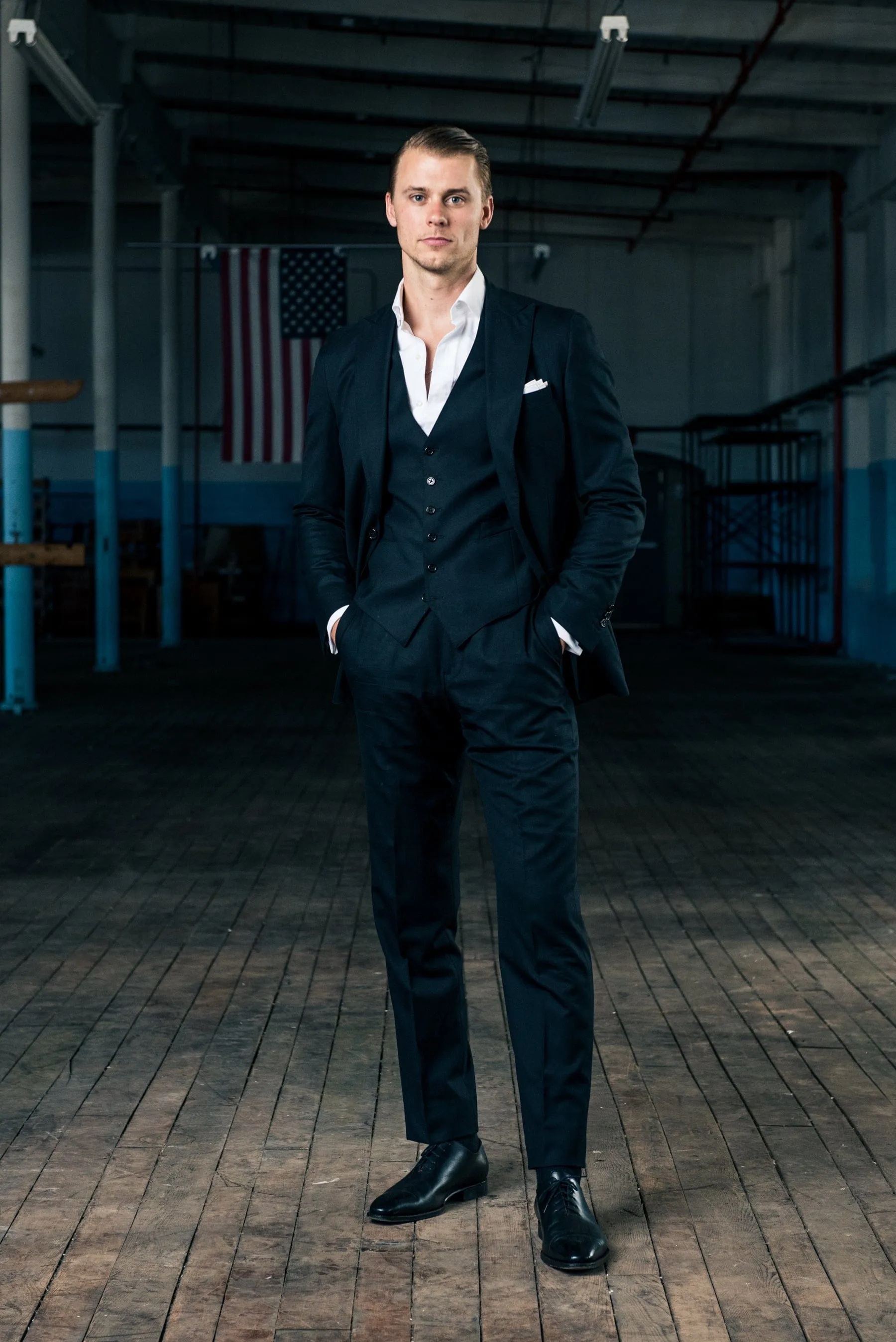 Our best-seller. A handmade bespoke suit crafted from an iconic 4-season worsted wool fabric made in Italy. This fabric is known as the ultimate "workhorse"; it's durable, resilient and can be worn in any season and any weather. If you're looking for a go-to suit that's always ready for anything, anytime - this is it.