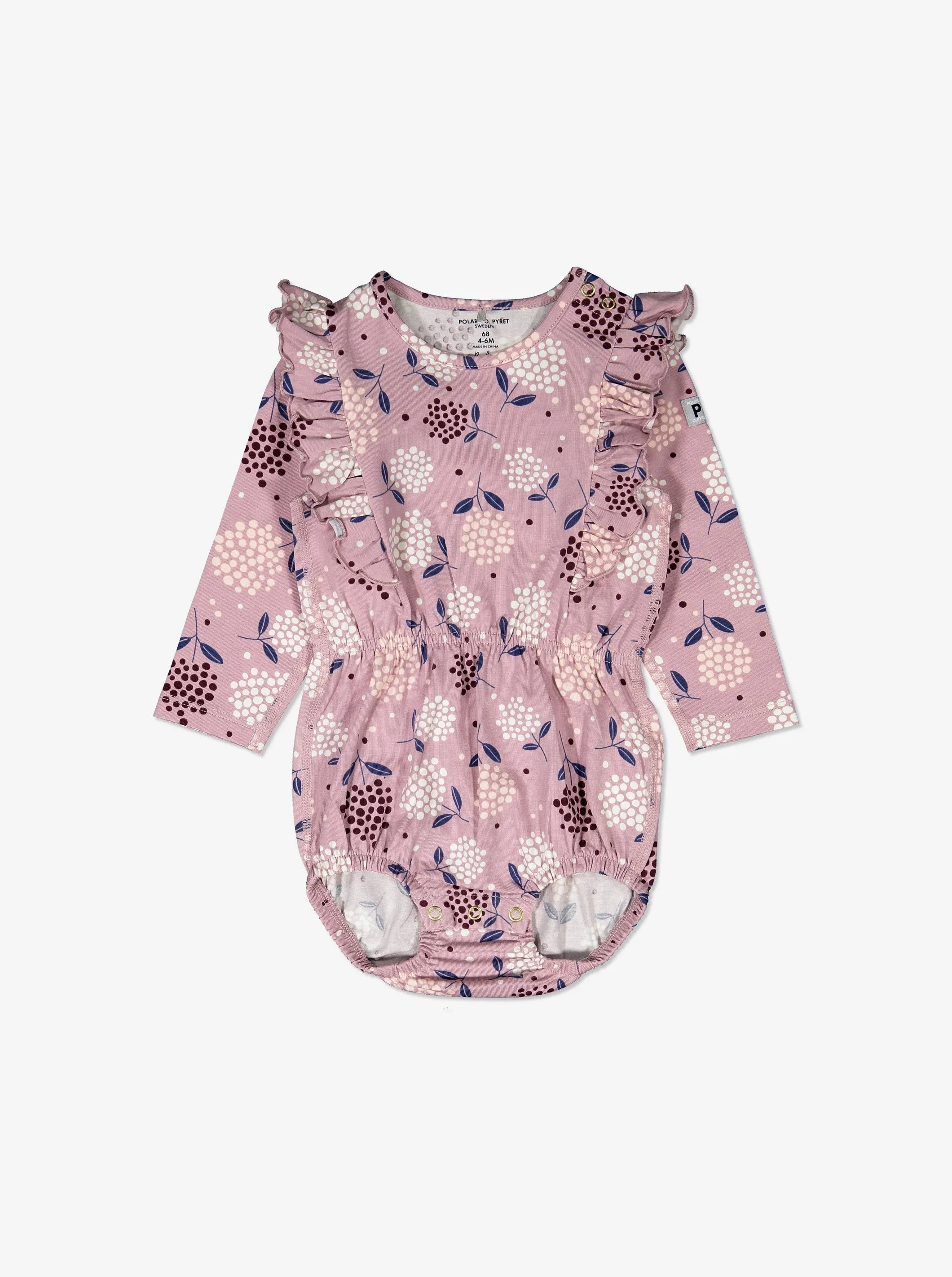 This pink babygrow with pretty floral print is perfect worn with under our corduroy pinafore dress.